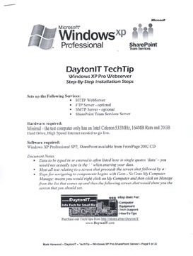 Requiring no more then an entry level Windows XP Pro capable computer, a copy of Windows XP Pro and a High Speed Internet connection - this TechTip will walk you thru the setup of YOUR OWN WEB SERVER complete with steps for installation of the FREE Microsoft SharePoint Team Services 2001 software.